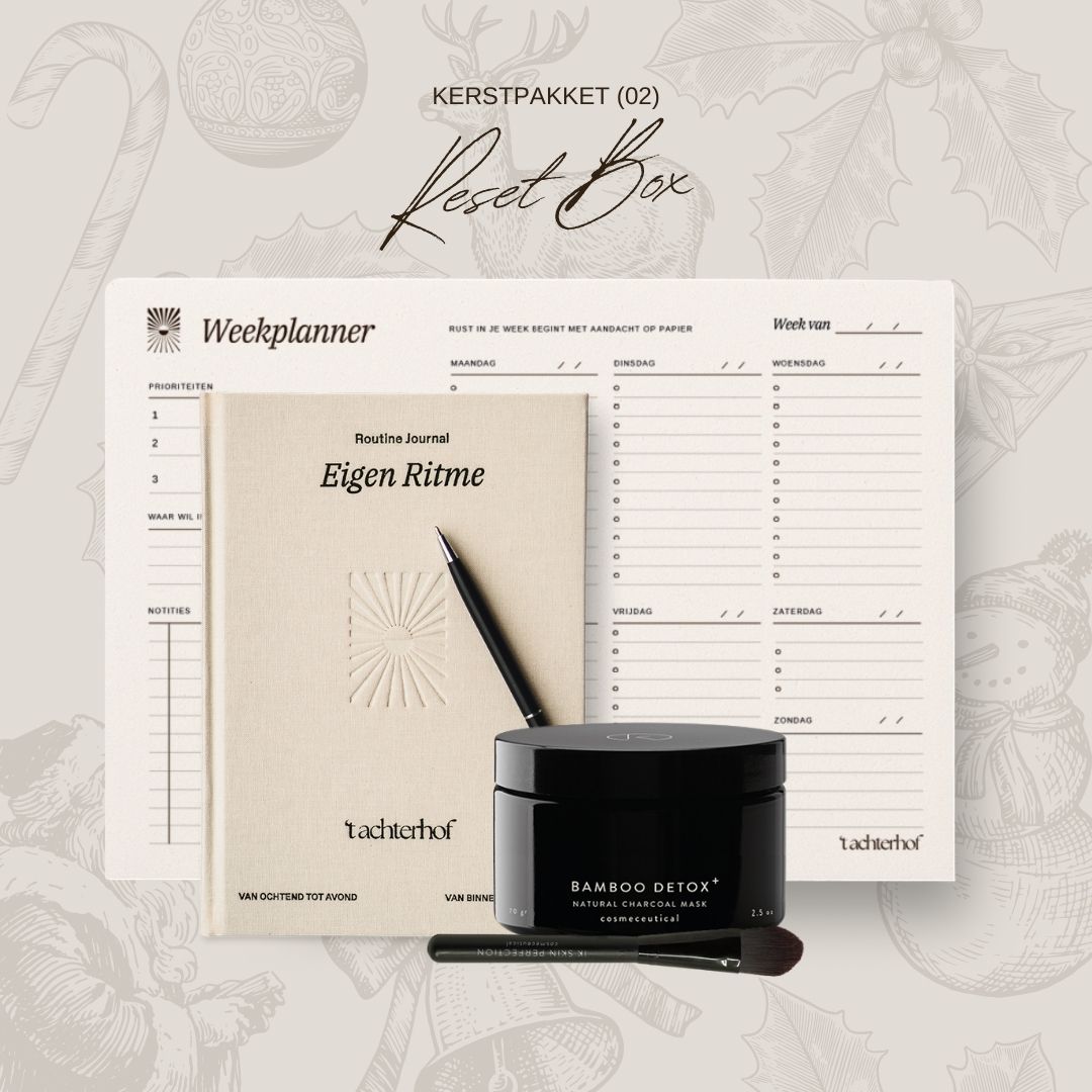 De Routine Journal om rust te vinden in het dagelijkse, de Weekplanner om ruimte te maken voor wat echt telt, en het Bamboo Detox Masker om even helemaal op te laden.