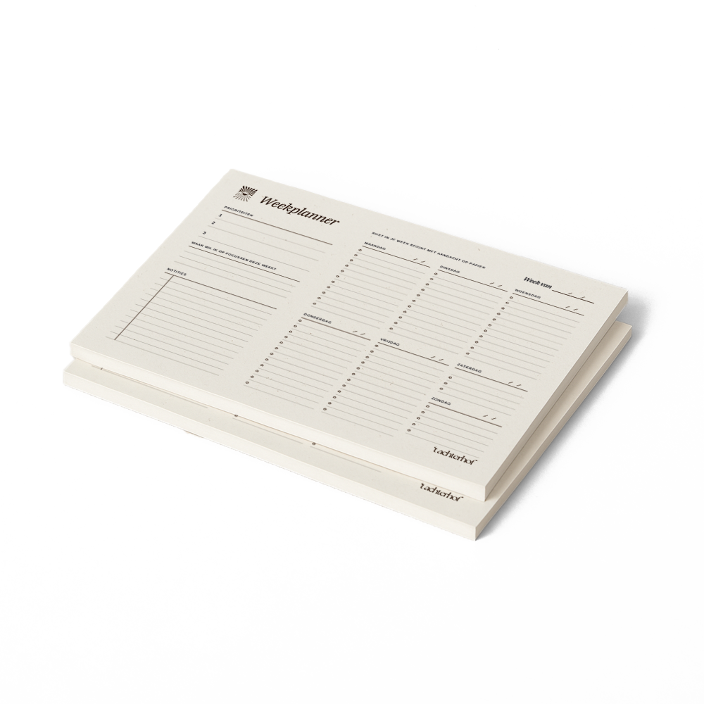 De Weekplanner is ontworpen om je te helpen richting te geven aan je dagen. Niet om meer te moeten, maar om bewuster te leven.